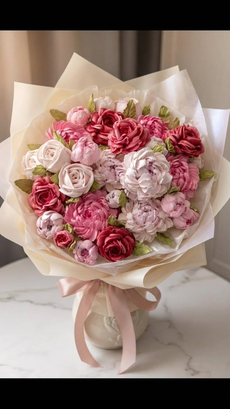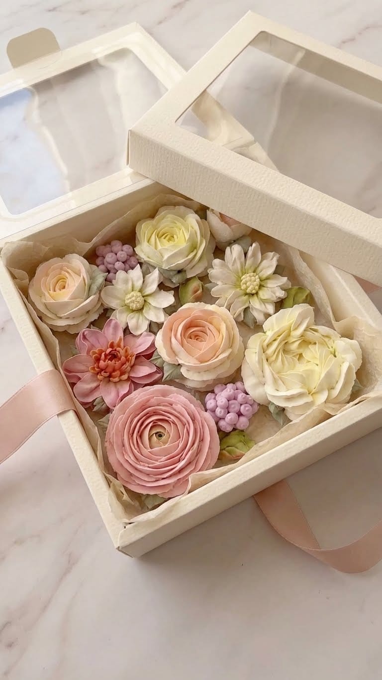 C’est une vraie guimauve artisanale, faite maison, spécialement adaptée au pochage floral. Sa texture a été pensée pour tenir en forme et ne pas fondre.